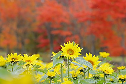 今年はいつも違う景色を見られました。紅葉とヒマワリという組み合わせは