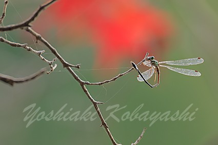 モミジが色づいているところを見ていたら、オツネントンボの姿がありました。