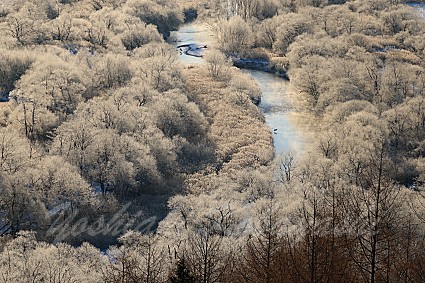 今朝はマイナス16℃まで冷えていたようで、川沿いには霧氷がついてきれい