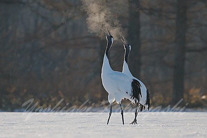 新年のタンチョウも元気に活動していました。今朝はマイナス17℃と冷えて