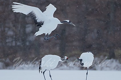 ーズン初の雪の中のタンチョウを撮影できました。釧路エリアでは雪が降る