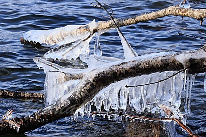 ちょっと湖畔を歩いてみると、飛沫氷ができていました。この時期としては