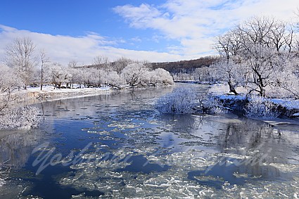 冷え込みが戻ってきて、川沿いには霧氷がびっしりとついていました。今シ