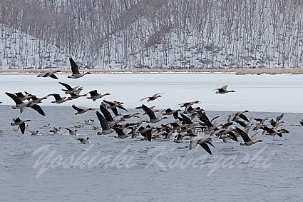 オオヒシクイの群れが渡ってきて、賑やかになっていました。つい先日まで