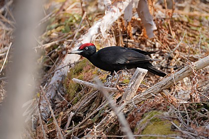 思いがけず、クマゲラに会うことができました.コケの生えた倒木を突いて