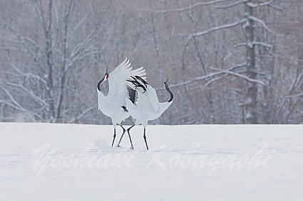 昨夜から雪が降って10cmほど積もりました。タンチョウが着地したり踊っ
