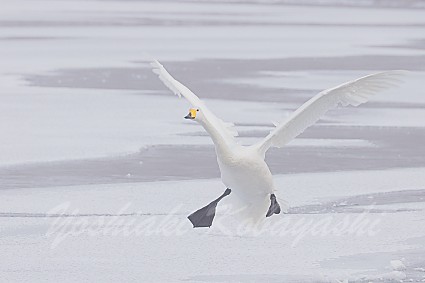 湖畔を歩いて氷を探していました。氷の上にも雪が乗ってしまっているうえ