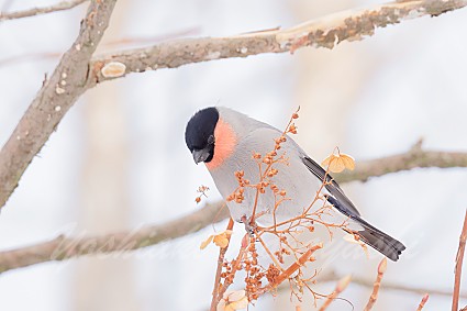 かけてみたら、ウソが遊んでくれました。すぐ目の前でツルアジサイの実を