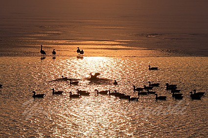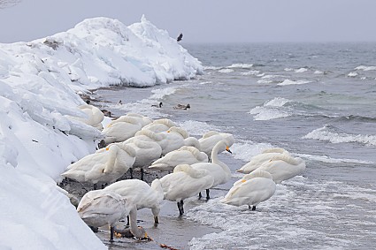 領されていて、ハクチョウは波打ち際の浅いところでじっとしているようで