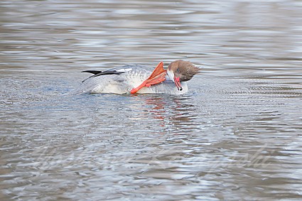 池の中ではカワアイサがのんびりと泳いでいました。ただ、小鳥も水鳥も全