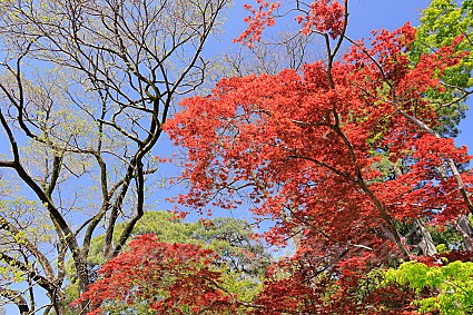 した。もちろんモミジの若葉もきれいな色をしていて、新緑の季節に移り変