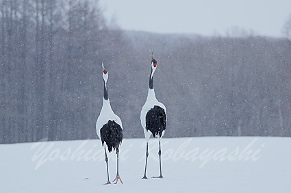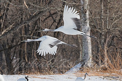 昨夜から雪が降って10cmほど積もりました。タンチョウが着地したり踊っ
