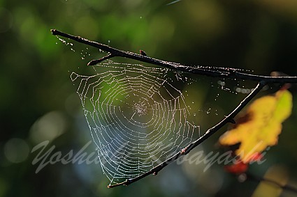 朝露に濡れたクモの網がキラキラ光ってきれいですね。今朝は濃い霧が出て