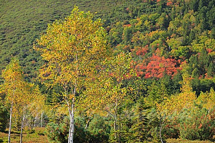 先日は緑の方が多く感じたシラカバの黄葉もだいぶ見頃になっていました。