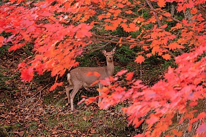紅葉を探しに森に入ったらエゾシカがいいところにいたので、とにかく褒め