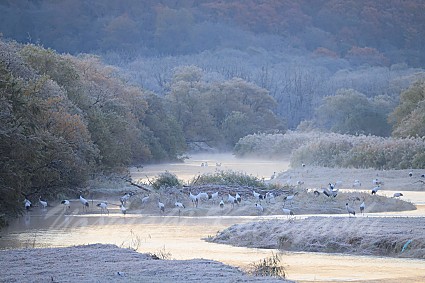 には霧氷もついていてなかなかきれいな景色になっていました。タンチョウ