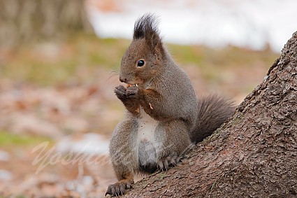 このところ足跡は見ていたものの、ぜんぜん姿を見ていなかったエゾリスに
