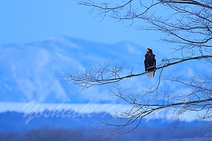 オオワシが日の出をじっと待っていました。もう少しで日が昇って朝日を浴