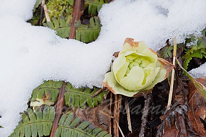 湿った雪が5〜10cmほど積もりました。もうフクジュソウが咲いているの